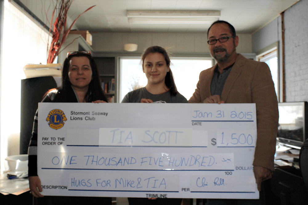 Saturday afternoon, Cornwall Seaway Lions Club donated $1,500 to the “Hugs for Mike & Tia” cause.