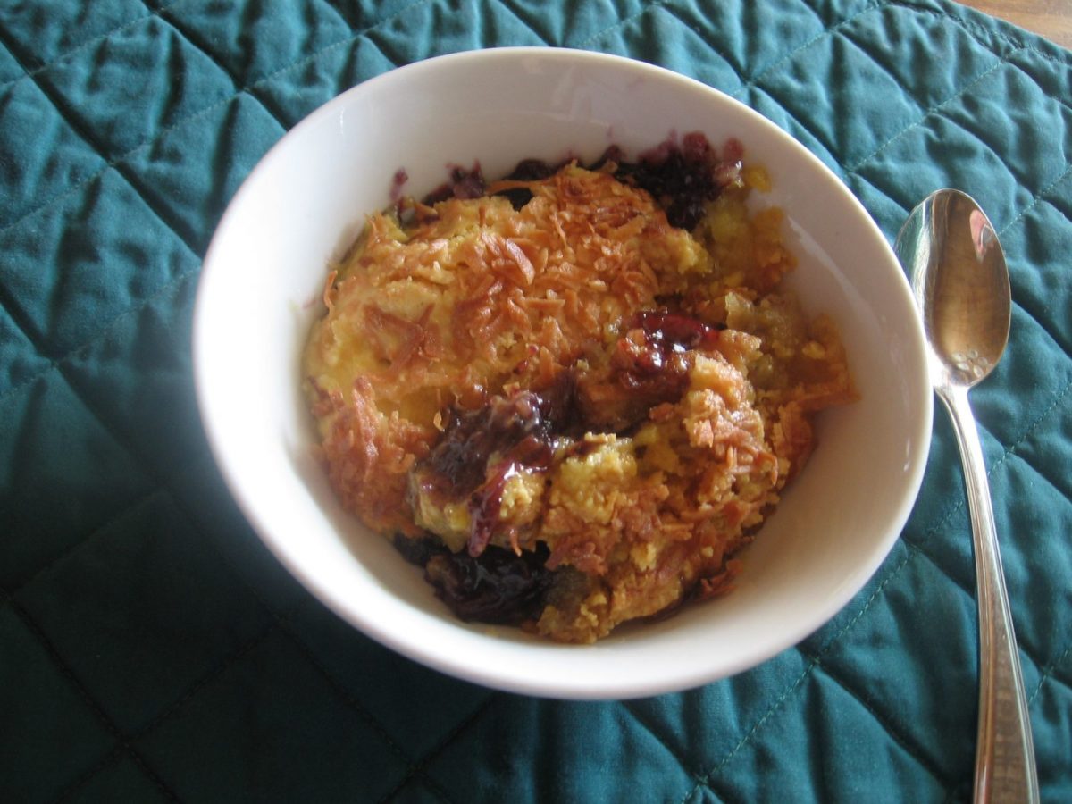 - 1/2 cup of Angel flake coconut ( I used 2 large handfuls of coconut, probably 1- 1/4 cups of coconut)