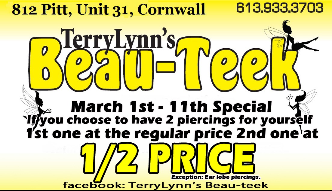 TerryLynn’s Beau-Teek is located at 812 Pitt Street, Unit 31 and is open Tuesday-Friday from 11:00-5:00 and Saturday from 10:30-1:30. Summer hours will be posted. Walk-ins and appointments are accepted. Telephone 613-933-3703. Visit or Call Today!