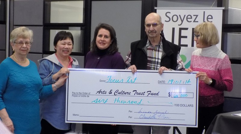 Tonight, at the beginning of the launch, that total had risen to $110,000 and after the presentation of 2 cheques, one from Focus Art (top photo) and one from the Arts Collective (bottom photo), 35 minutes later, that total rose to $144,500.