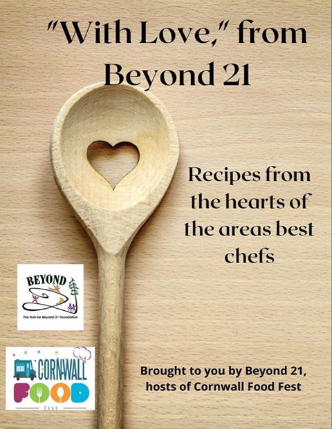 The cookbook will be available online on August 10th.  Check out Beyond 21 or Cornwall Food Fest on Facebook on August 10th to learn how to get your copy for a donation to Beyond 21. Information will also be posted to beyond21.org on the same day. Also keep an eye on our FaceBook page for the 10 day “With Love, Beyond 21” Countdown which starts on August 1.