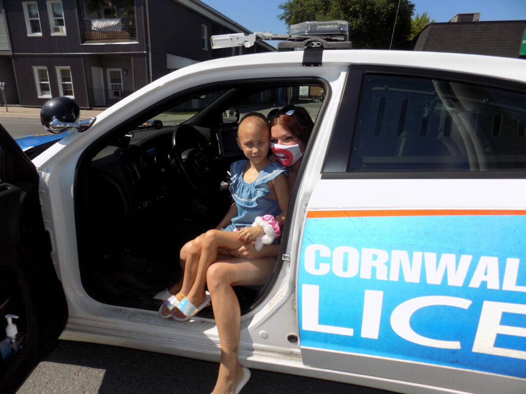 I got to meet Jersey and her mother and was so happy to be there when 2 members of the Cornwall Police Service. Const. Mel Chartrand and Const. Will Ridley stopped by to present Jersey with 2 Teddy Bears and had her sit in one of the police cars for a photo.