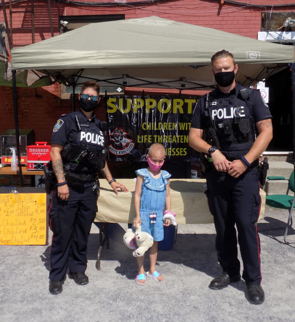 Laurie-Jade, one of the members of the club, told me. “This year we are sponsoring ‘ Jersey ‘. She is a sweet 6 year old who has Wilms’ Tumor ( Kidney Cancer ). She lost one of her kidneys in January 2020 and has been going through chemo and radiation for the past 6 months. We are so happy that on July 28th she got to “Ring The Bell”.