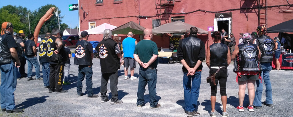 So today is finally the day. Excitement at the White Knucklerz RC Clubhouse 9The Clubhouse at 527 A Pitt Street, Cornwall, Ont.) as over 60 bikers from many different clubs (Lancaster to Ottawa) gather for the blessing of the ride before heading out for the 6th Annual John Rothwell Memorial Motorcycle Ride & Hot Rod Event.