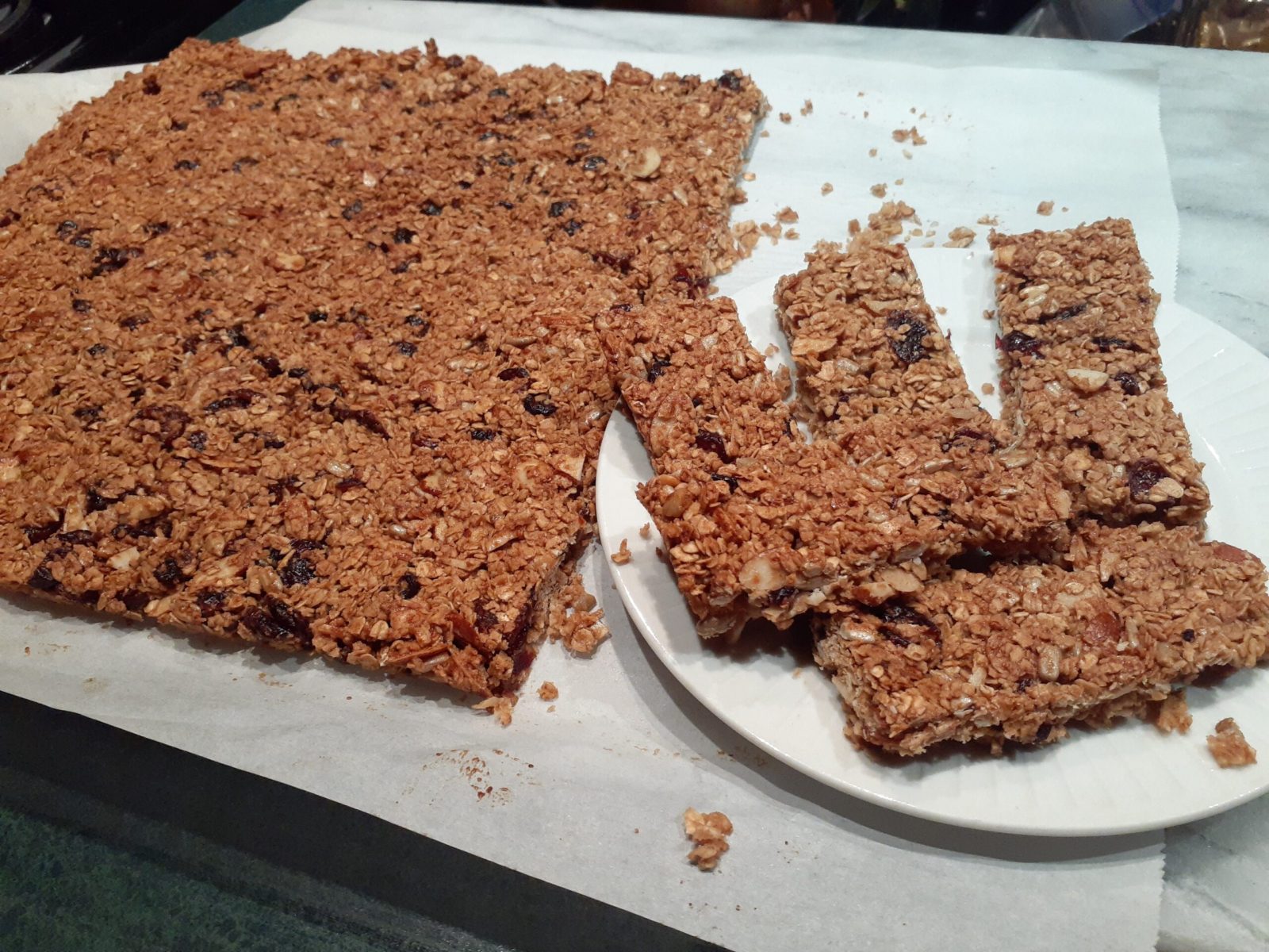 In this crazy world we are now living in, let me give you a bit of happiness for you to bake. Whether your kids or yourselves will be back in school or sitting at the dining room table with your laptop, my granola bars will be there for you to munch on for a healthy snack. Each recipe will make 30 bars. Both recipes are delicious and filled with great flavour. Once baked and cooled overnight, cut them into bars and wrap each bar in a bit of plastic wrap. Then you can just pop them into some Tupperware or freezer bags and freeze for future snacks. These are far more affordable than store bought bars. Get your kids or grandkids to measure, mix, pat and bake. Make some happy memories with your family! Enjoy!