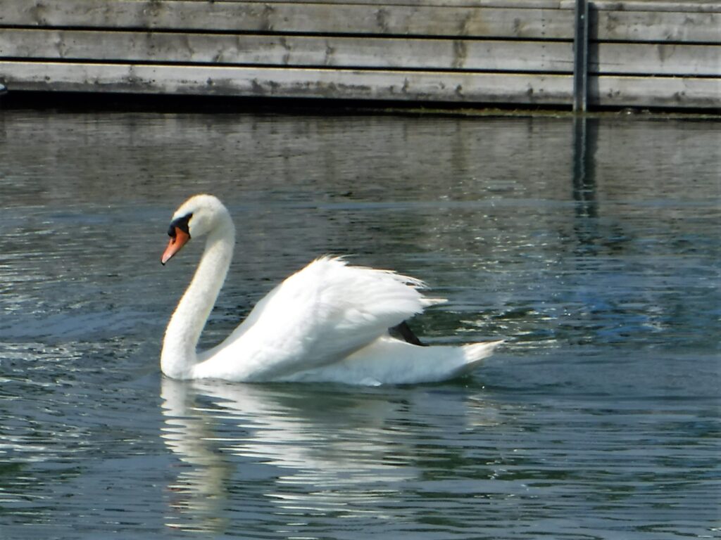 Next, we drive out to the Wellington boat launch to assess our next paddling option. West Lake is a pretty cottage area and quite peaceful today. Other than a couple of jet skis at the far end, I see no other traffic in the bay. Nearby, graceful mute swans eye their young cygnets as they feast on the aquatic plants in a shallow part of the lake. I am sure they do not mean to moon me as they inadvertently sabotage my attempts to photograph them; I don’t take it personally. In Prince Edward County swans are common but for me it is a novelty and I enjoy observing them from a respectful distance. On the shore I spy a set of rental cottages on the lake conveniently located across the street from a Tim Horton restaurant: Lakefront accessibility and quick access to breakfast. Delightful!