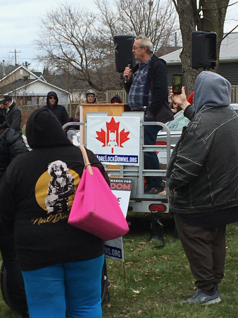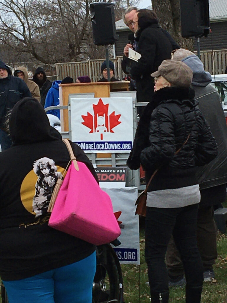 From Stand up Canada, Paula Tucci spent 10-15 minutes educating us about our “God Given” civil rights as laid out by the Canadian Charter of Rights and Freedoms. She claimed that we are “under attack from our own government” but offered no proof. Stand up Canada is a brand new “civil rights” group whose sole focus is Covid-19 issues. What civil rights experience do they have? Did they exist at all before Covid-19? Why should I listen to her? “God”, “God-given” and “God Bless” comments peppered her speech.