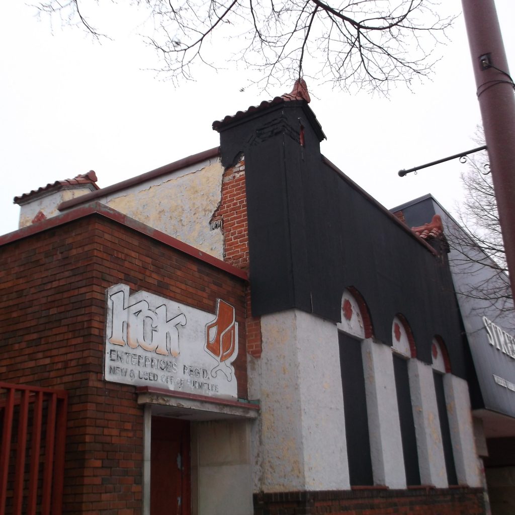 9. The CPR’s “peanut line” station served passengers here from 1915 to 1952. In 1959 the abandoned station was torn down and a decade later, Steinberg’s opened a corporate style store here in the modern futurist/brutalist fashion, still identified by the line of exposed unadorned entrance pillars, the large glass front and the bold exterior that highlights the building’s construction materials.