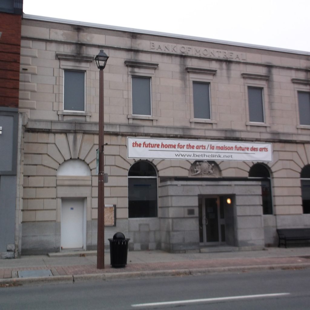 12. The order, symmetry, and formality of this building encased in solid concrete blocks along with decorative stone work and voussoirs , gives this building a grandiosity associated with Beaux Arts Classicism. Make sure you see the now partially covered sculpted Bank of Montreal coat of arms over the door. The covered front entrance is a new addition. The original roof line with its row of concrete brackets and small pediment have been removed.
