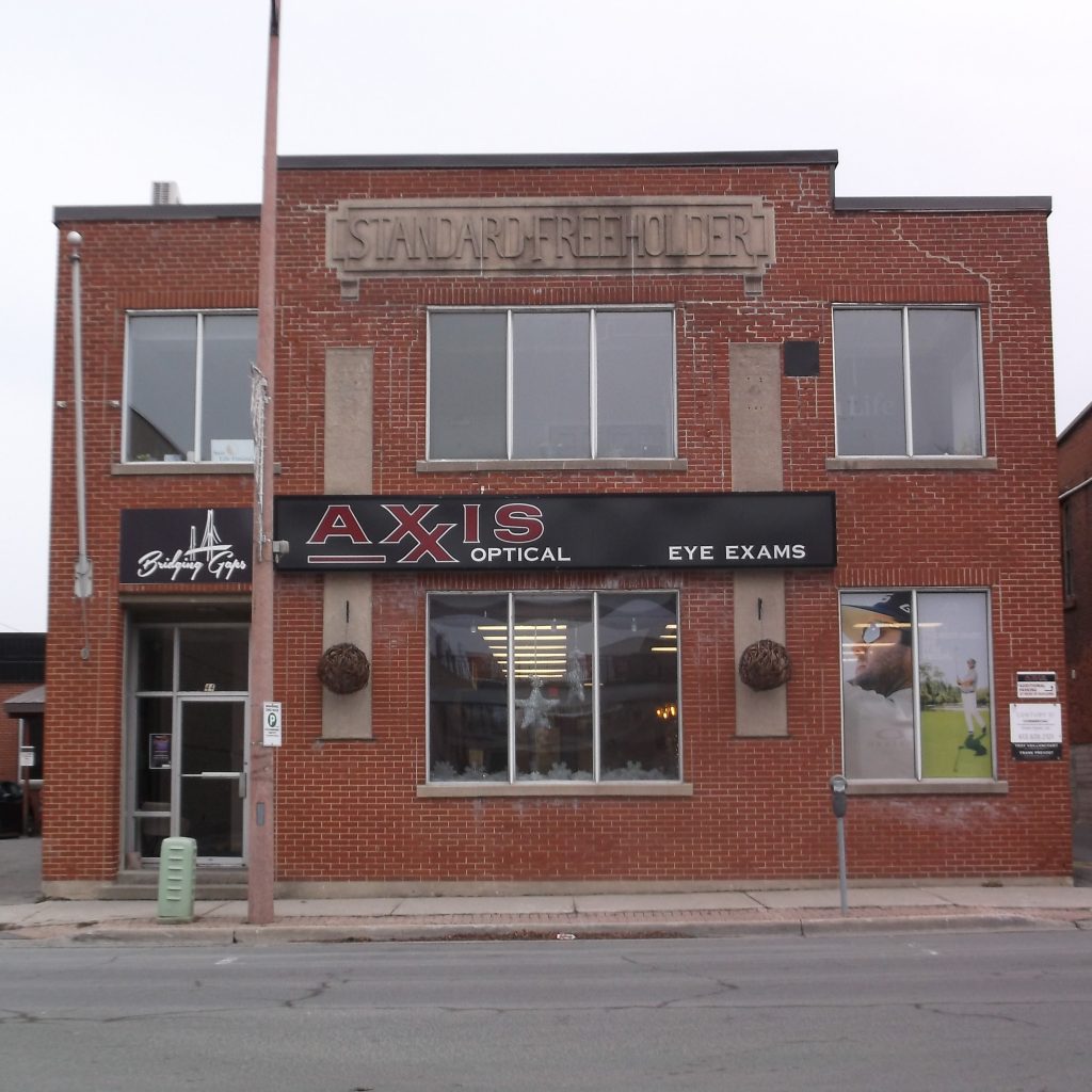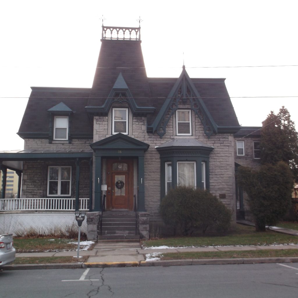 3. In 1932 the Cornwall newspapers, “Standard,” and “Freeholder,” merged resulting in the construction of this stream lined “Art Moderne” building. This style emphasizes the horizontal seen in the building’s smooth walls, decorated with two ground to roof slashes that were once outfitted with torch-like lights and flat roof. It also favours asymmetry exhibited in the façade and the entrance to one side.