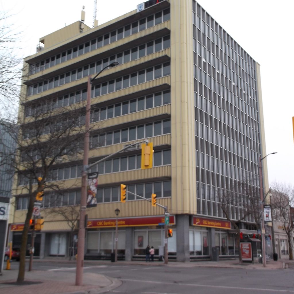 4. In 1956, this mini “New York” style skyscraper with its rectilinear shape, and taut, unadorned plane surface, was the epitome of the fashionable International Style. Its original bluish surface covering, was removed. The designers did not take into account that Canadian winters were more severe than those of New York City, and ice wedged its way between the applied surface and the wall.