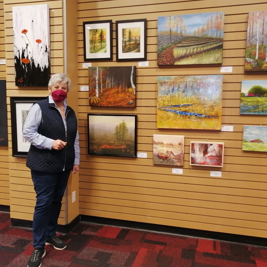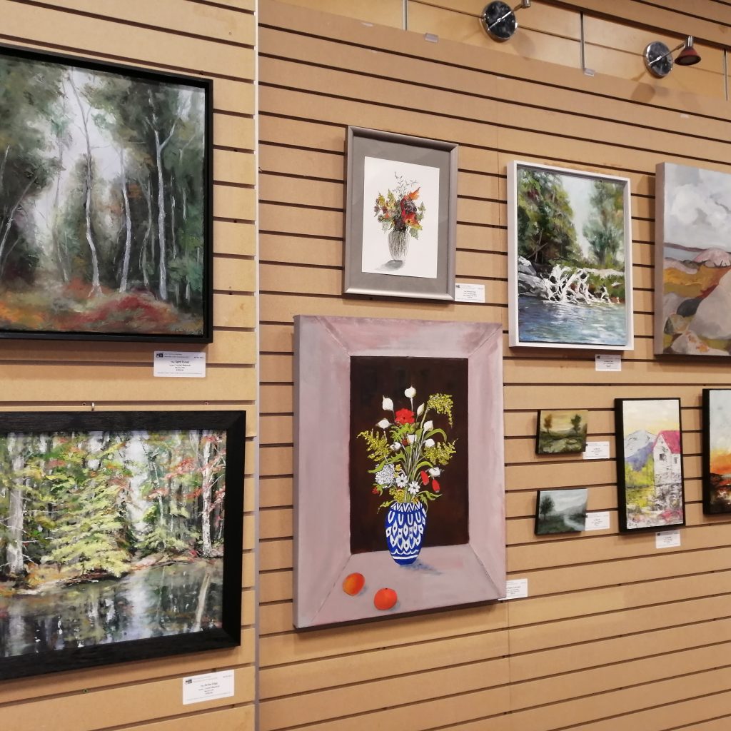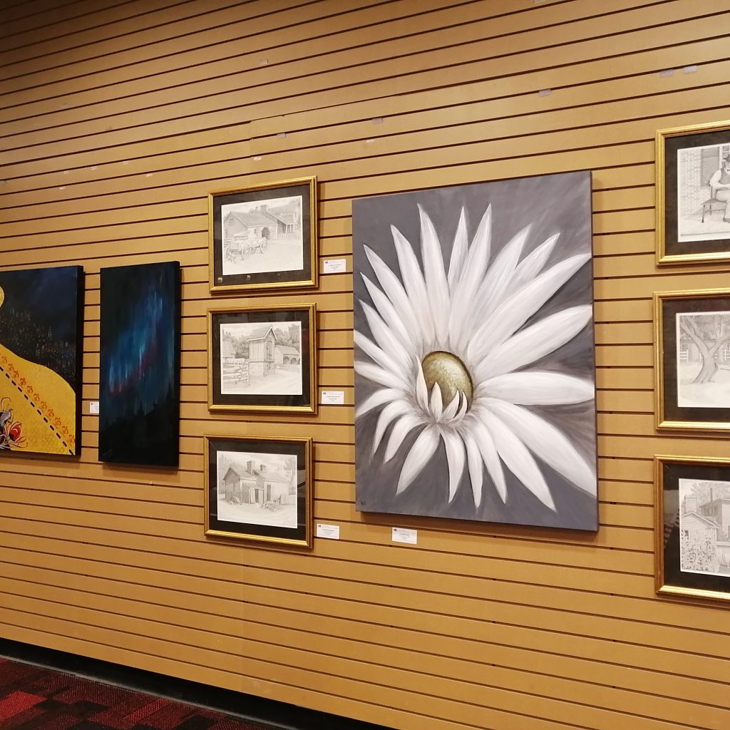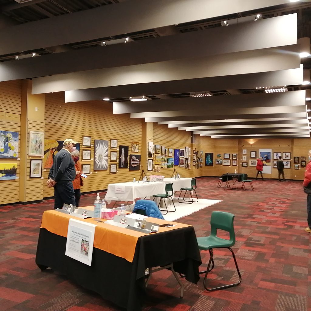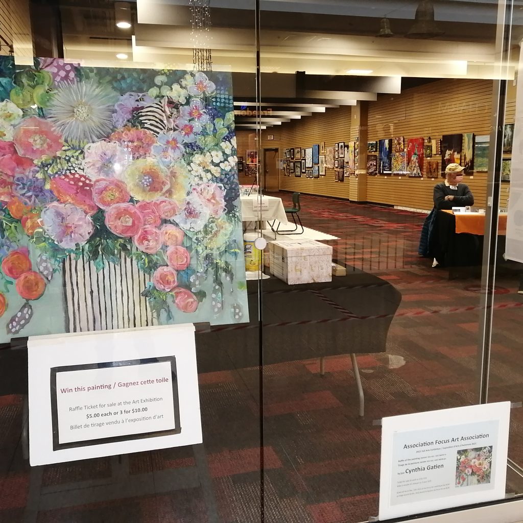 In the window, you will see a beautiful painting of flowers, titled, “Where You Go, I Go” (valued at $1,000) painted by artist Cynthia Gatien. You can buy tickets for a chance to win this magnificent 36 by 36 inch painting which has been donated by the Cynthia. Tickets are available at the show and the draw will take place at the Christmas Focus Art meeting on December 16th at the RCAF.