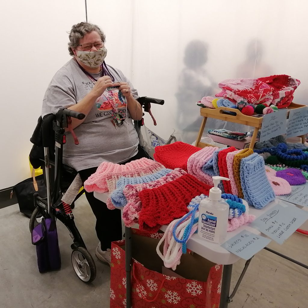 Sharon Lavoie had a huge assortment of crocheted articles and told me that last year she made many blankets which she donated to Maison Baldwin House.
