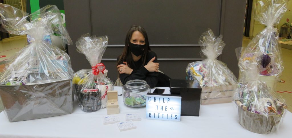 In front of Laurie were baskets of goodies, some donated by the vendors and some by the stores in Cornwall Square. Come and purchase a ticket for a chance to win one of these with proceeds going to the animal rescues present.