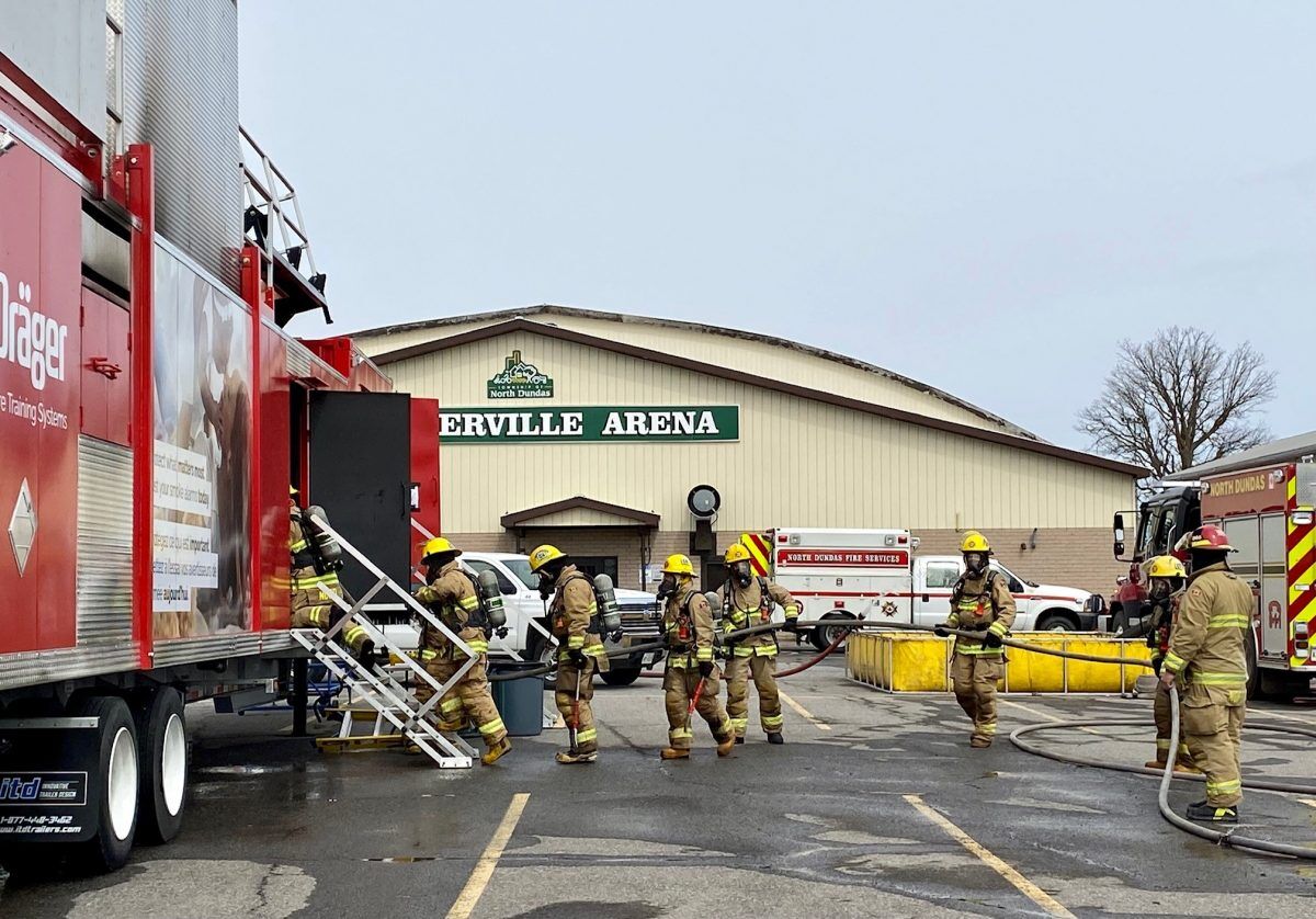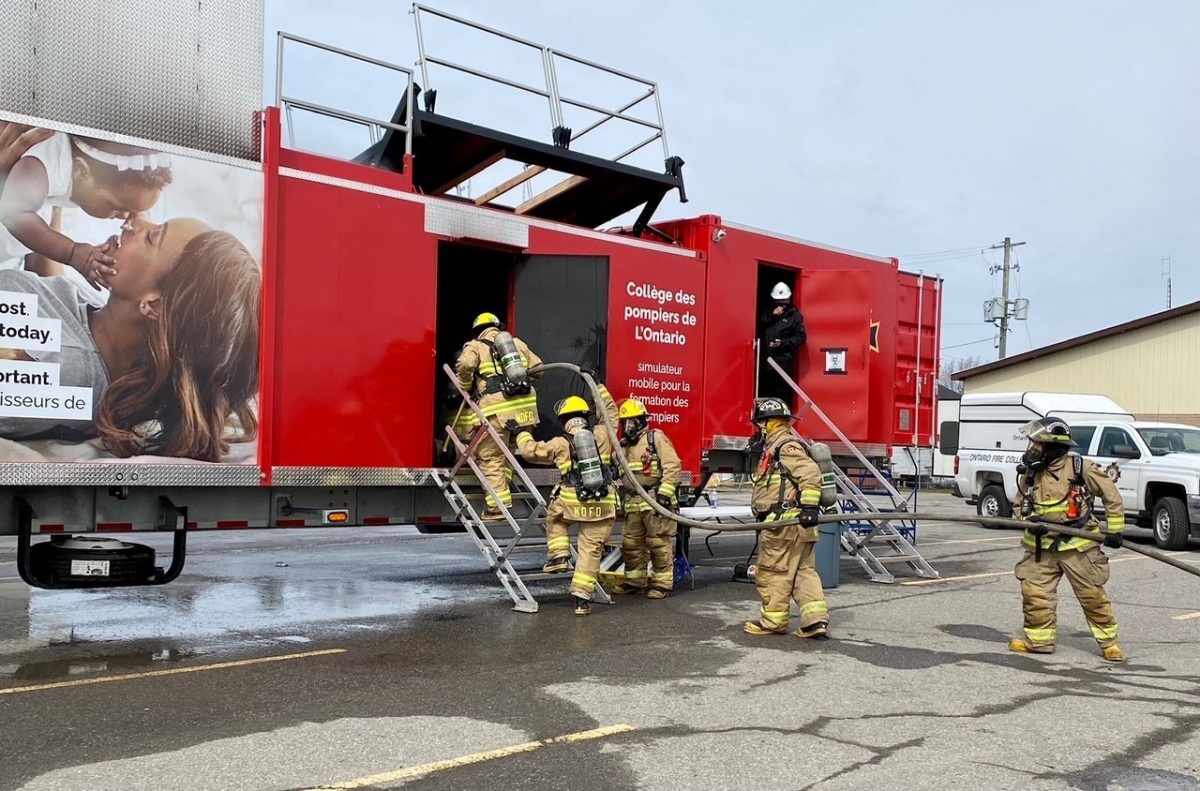Volunteer firefighters with the North Dundas Fire Service (NDFS) received invaluable hands-on training last week. The Mobile Live Fire Training Unit (MLFTU) was on site at the Chesterville Arena from Tuesday, April 19 to Saturday, April 23.