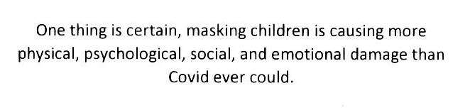 Kids transmit Covid. Maybe you don’t care if your child passes on their Covid infection to their friends and families but there are reams of testimonials from families ravaged by Covid, resulting in the passing of one or both parents (sometimes the breadwinner). You don’t think losing a parent causes damage? Is this really a better option than masking and vaccination? I don’t think so.