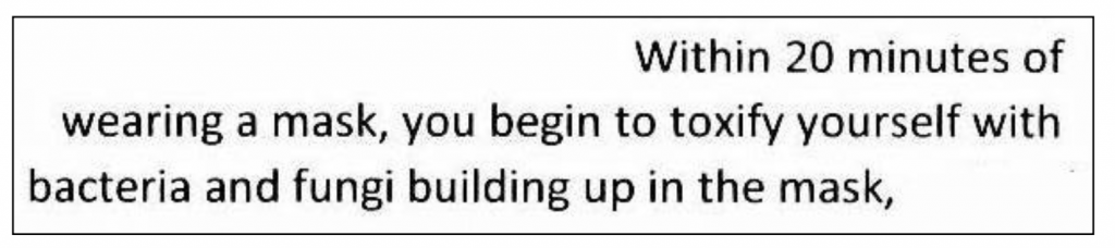 The pamphlet claims that masks decrease immunity. I’ve never heard this one and I have been reading about Covid every day since mid-2020. In good ResUrCher mode, I googled: “are masks immunosuppressive” and most of the results dealt with immunocompromised people needing masks.