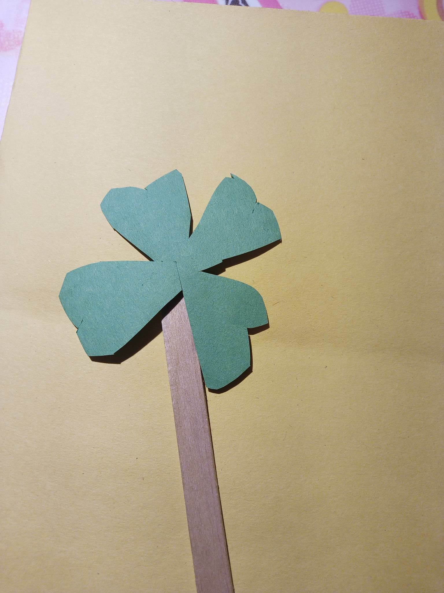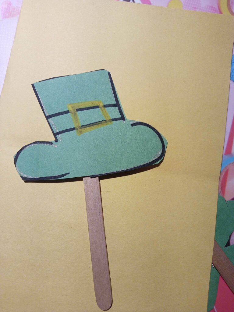 STEPS: Cut out the drawn shapes (see the attached pictures). Glue the wooden stick to the shape. Let’s create simple shapes to celebrate this day on Friday, March 17th. Shapes such as the four leaf clover and the hat of the Leprechauns which we can place as decorations around us so that the Leprechauns can’t pinch us because having green around us makes us invisible to the Leprechauns.