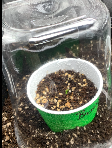 To start your seeds, you’re going to take a container and fill it with the seed soil. Place your seeds inside the soil according to the back of the package. Cover the container with saran wrap or a dome to help with the germination of the seed. Place the container in a warm location between 18C – 24C.