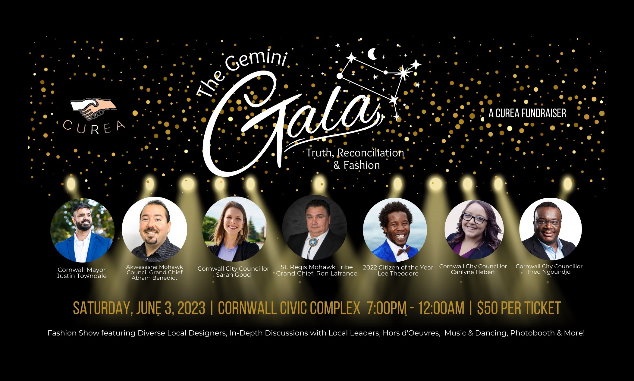 But The Gemini Gala is much more than just a fashion show. The event will feature in-depth discussions with local leaders, including Cornwall Mayor Justin Towndale, Akwesasne Mohawk Council Grand Chief Abram Benedict, Cornwall City Councillor Sarah Good, Cornwall City Councillor Fred Ngoundjo, St. Regis Mohawk Tribe Grand Chief Ron Lafrance, 2022 Cornwall Citizen of the Year Lee Theodore, and Cornwall City Councillor Carilyne Hebert. These local leaders will share their personal and community perspectives on the work being done for Truth & Reconciliation.