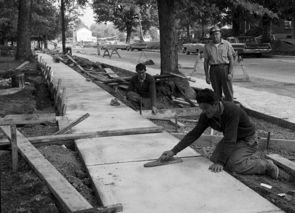 PHOTO: When the section of Sydney adjacent to the cemetery was widened and a sidewalk installed tombstones were found.There is every possibility that old graves are still to be found under the street. (Photo Courtesy,“Standard-Freeholder.)