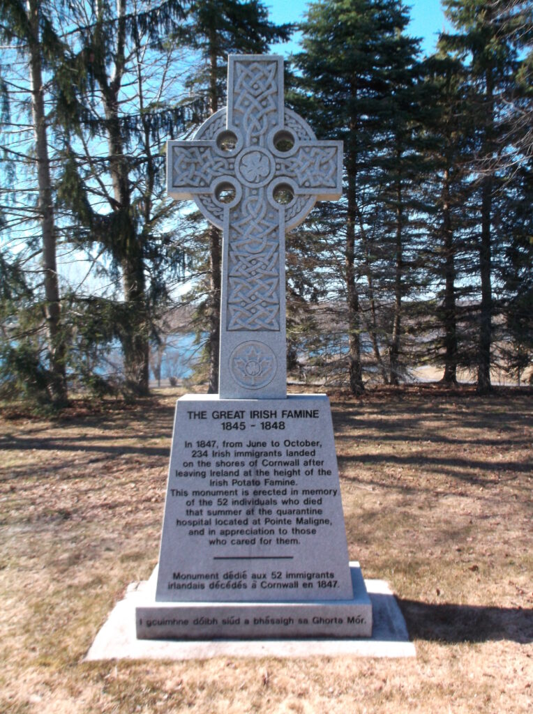 1.The single greatest loss of life in Cornwall and SD & G took place in 1847 when 52 out of 234 Irish immigrants, fleeing the Potato Family came to Canada to start a new life, died from disease in the quarantine “fever” shed erected on Pointe Maligne. Claiming both Catholic and Protestant victims, of all ages, the Celtic Cross in Lamoureux Park adjacent to the Museum marks the tragedy.