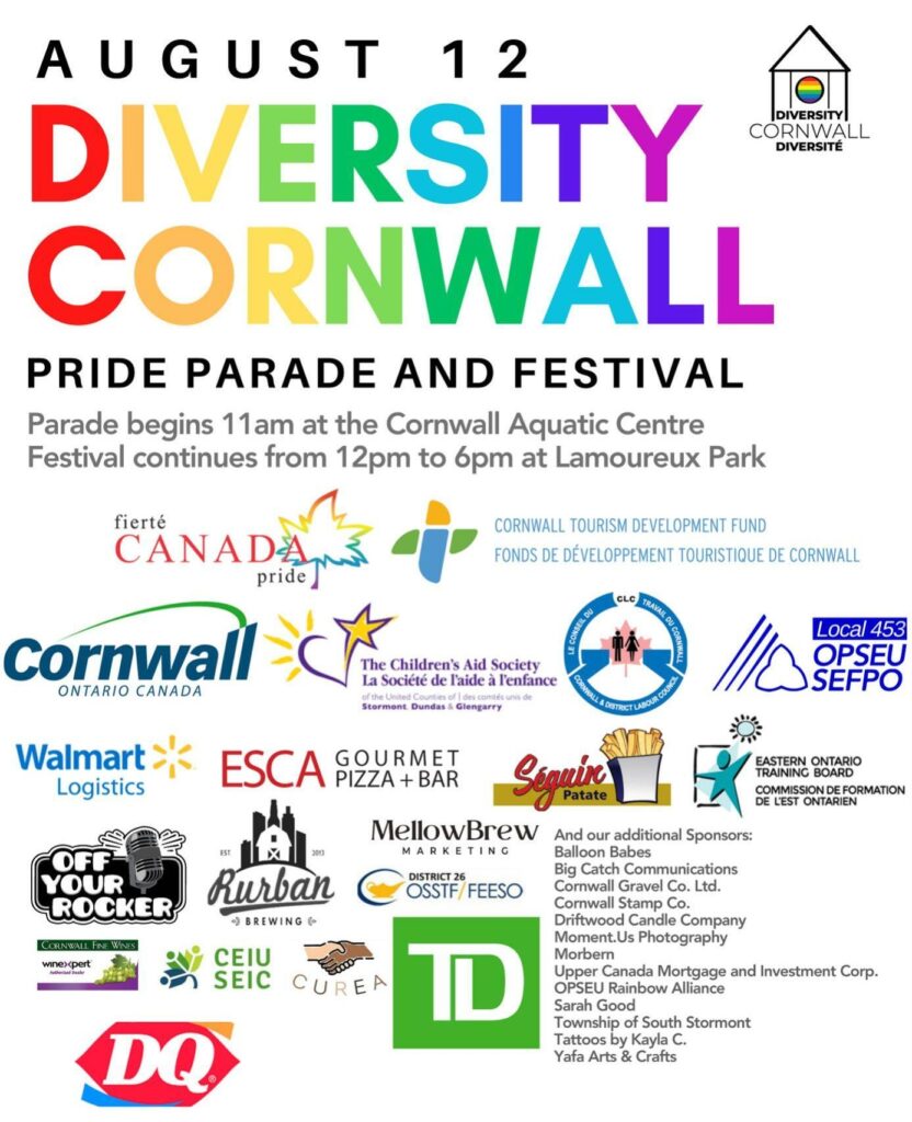 Diversity Cornwall shared the following about why the Pride festival is important. “Pride week is an opportunity for residents of Cornwall, Akwesasne and SD&G to celebrate diversity, love, inclusion and acceptance of 2SLGBTQ+ community members. While we have come a very long way in the fight for equal rights for 2SLGBTQ+ community members, there is still a very long way to go. We have seen a dramatic increase in homophobia and transphobia in our community over the past year, and this has highlighted the importance of creating spaces, events and services that welcome the 2SLGBTQ+ community and lets them know that they are not alone, and that they can feel safe to be themselves in our community. The Pride festival is an opportunity for all of those who support the right to be yourself, and love who you love, to demonstrate their support for our community, and to show that the negative attitudes towards marginalized community members are not representative of the majority of our community.