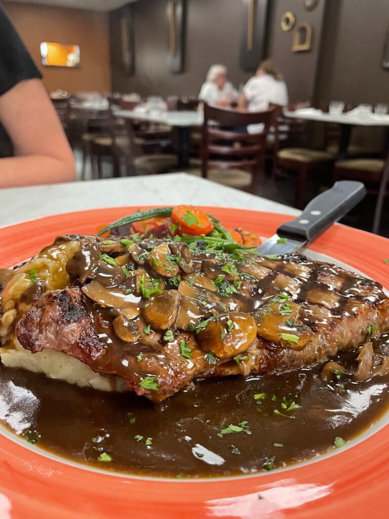 On the brunch menu, we strongly recommend the Banana Foster, the Eggs Benedict or the Free Range Two Eggs with Candied Bacon. Yes, you read right, CANDIED BACON! Lunch menu offers Smoked Pork Ribs, Seafood Monterosa or Pansit Bihon, a Filipino dish worth trying. On the dinner menu, you can’t go wrong with their Chef Cut Steak. And don’t be shy, try the beet salad or the Caesar, pictured below, and end the meal with one of the delectable desserts.