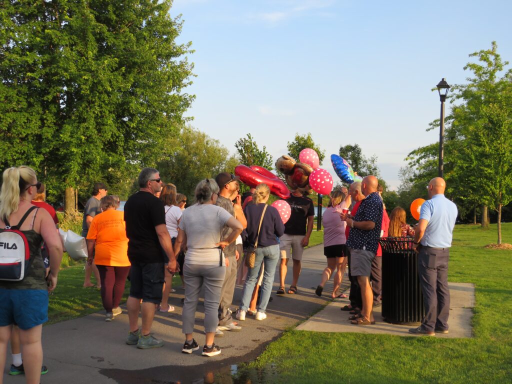 Chantal thought there would just be a few people meeting for the walk but as you can see Paul has a lot of people who are thinking about him and came to walk and release balloons and lanterns for him.