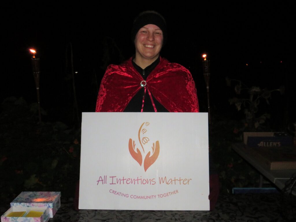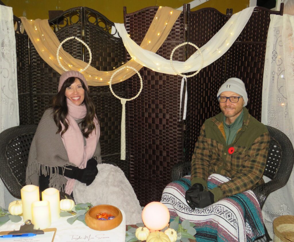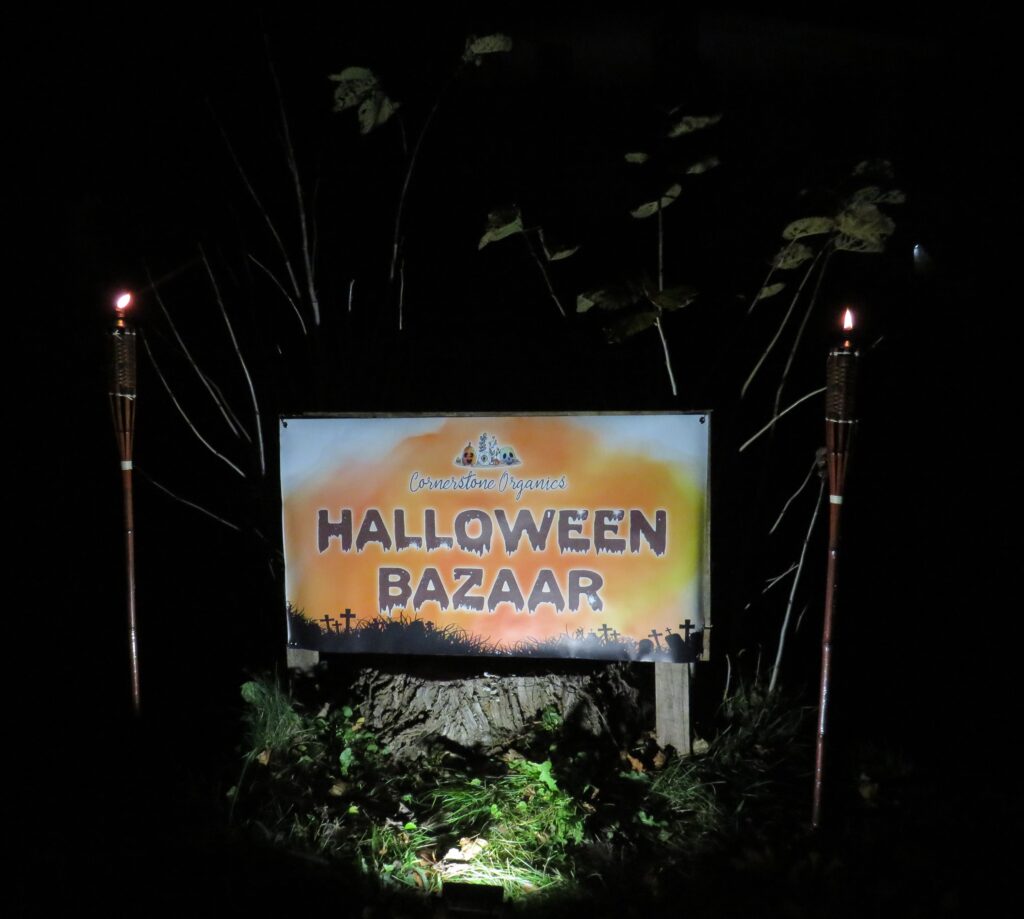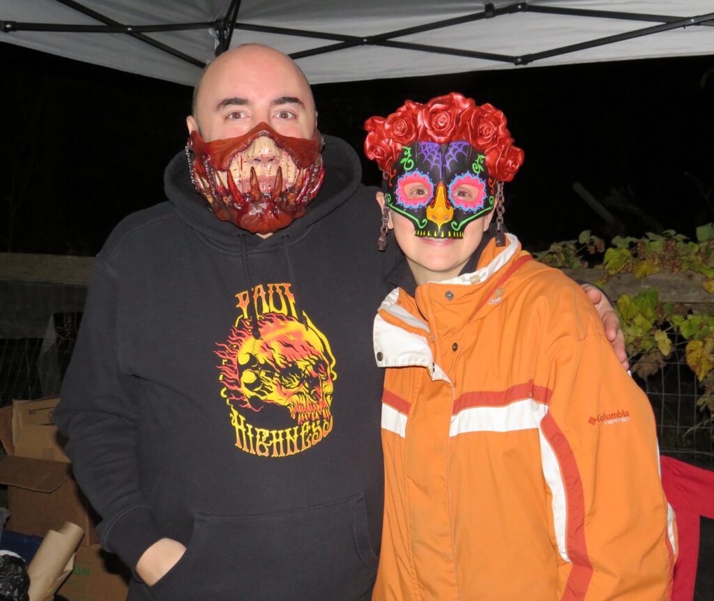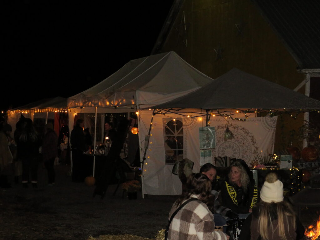 With Halloween night almost here I visited an event that is in it’s third year but I have never been able to go to it as it is always on a Saturday which of course, having a life partner who is a DJ, is a day when we are celebrating a Wedding by playing music and often doing Videography. It is because of their daughters wedding, that took place at Cornerstone Organics this past Saturday, that Jamie and Matt decided to hold this annual event on Sunday (October 29th) and I was a happy Seeker Chick as I drove from Martintown to 16592 Post Rd. where I saw cars lining both sides of the road and in the distance was an orange lighted area with lots of music and excitement going on. It was a chilly evening but there was plenty of warmth with people sitting around a fire and even though vendors were wrapped up, many in blankets, you could feel the warmth and Halloween vibes in the air.