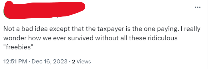 Many of the comments to Ferreri’s video included a very negative “why should I pay (for someone else)”? theme. This is a concern that I see reinforced by conservative messaging. So far, Canadian society is geared to considering the needs of society as a whole rather than focusing on me-me-me.