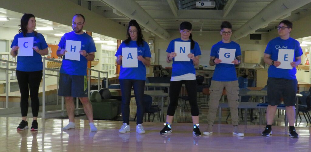 Let’s create real change – was this year’s 2024 Bell Let’s TALK campaign theme and this year the Canadian Mental Health Association Champlain East has partnered once again with local Mental Health Ambassador Christal Bowen to share messaging around the importance of not only our physical health but prioritizing our mental health. Each member received a Bell Let’s TALK “CHANGE” postcard, CMHA Business card and Buttons for each patron to wear with inspiring messages of hope.