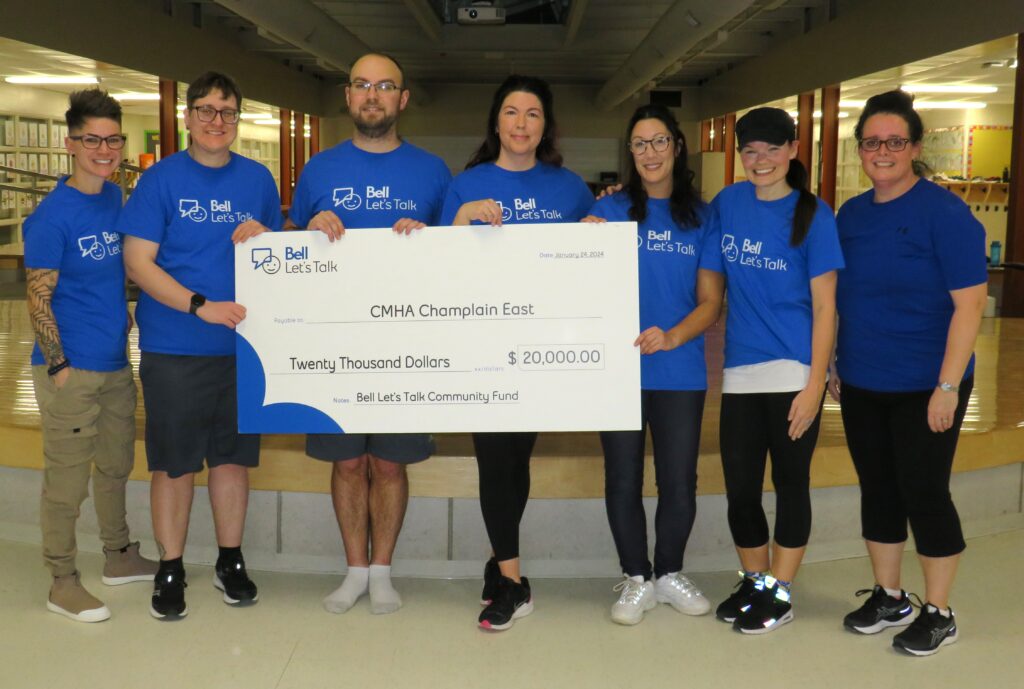 Congratulations to CMHA Champlain East for receiving a $20,000.00 cheque from Bell Lets Talk to help encourage the conversation about Mental Health.