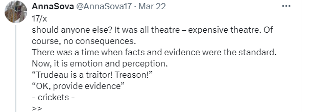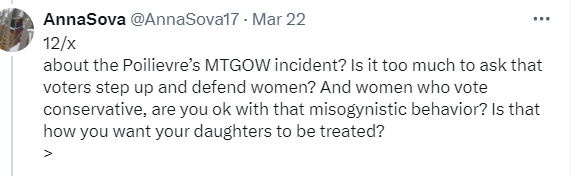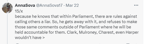 #10 Like the recent comment here from MP Marty Morantz from Manitoba openly insinuating that Justin Trudeau is a dictator said “Take the jackboots off the necks of Canadians”. He said it deliberately knowing how inflammatory it was. Or this one where “Poilievre accuses Trudeau of working against Canada and in ‘a foreign dictatorship’s interests’ “. I mean, really?