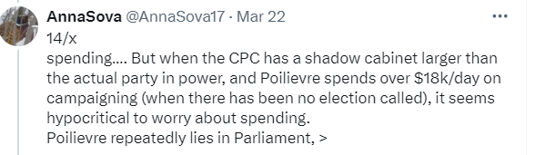 #14 Why is the shadow cabinet larger than the actual party in power? And why is Poilievre campaigning when there is no election called?
