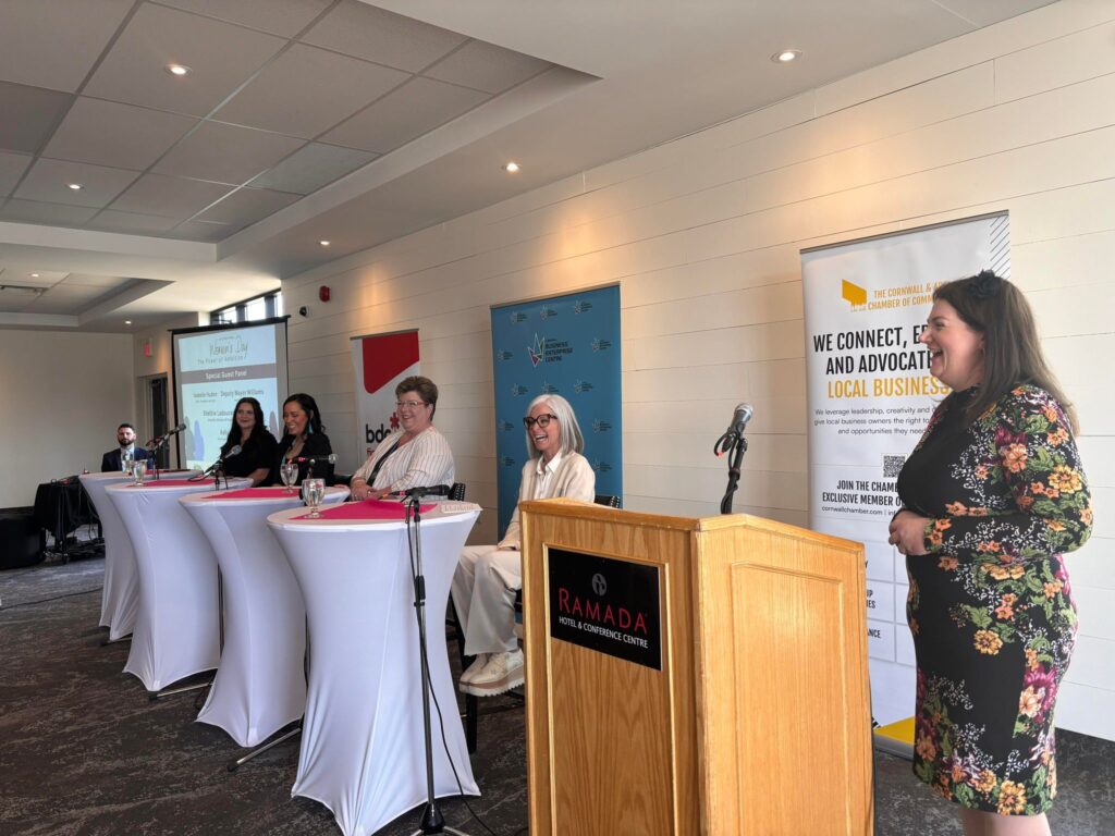 Today, the Cornwall Business Enterprise Center and the Cornwall and Area Chamber of Commerce hosted a momentous International Women’s Day Luncheon, marking a significant gathering of influential figures and community members. The event, held at the Ramada Inn, attracted a wide array of attendees, including Mayor Justin Towndale, councilors Elaine MacDonald, Sarah Good, Denis Sabourin, and numerous prominent women from the community such as Doreen Ashton Wagner from Business Sisters, Lisa Dupreau from Agape and and Debbie Fortier from Maison Baldwin House.