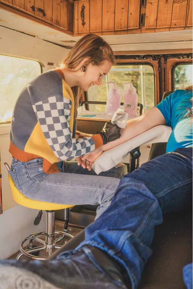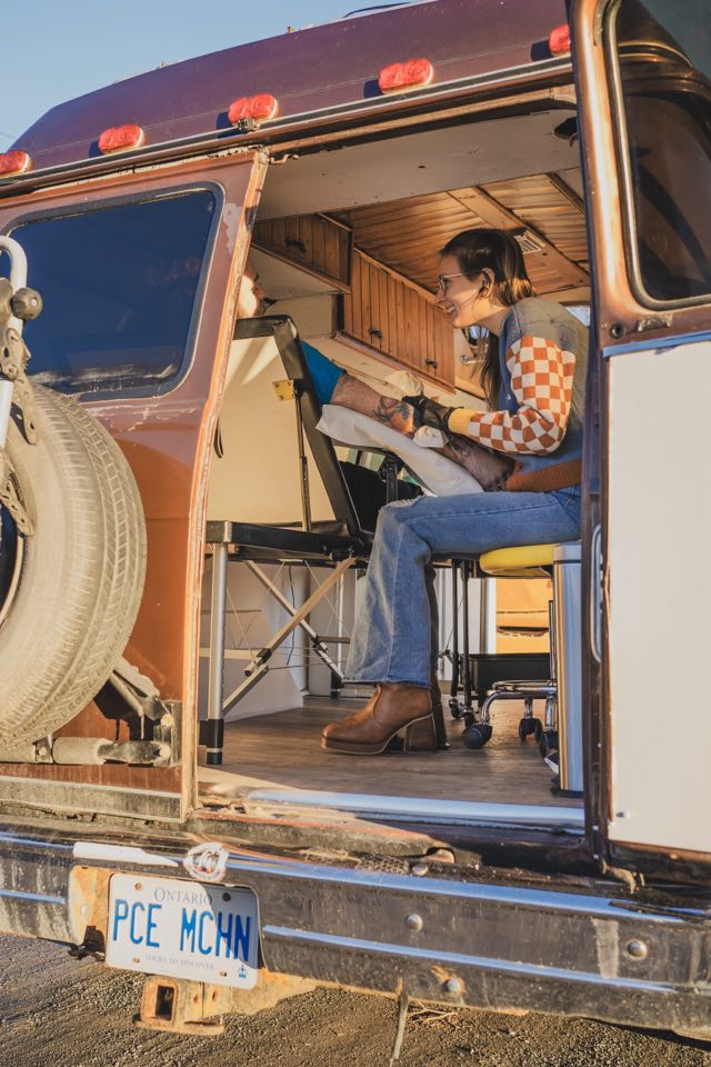 Thank you so much. My 1 year anniversary is a huge milestone that I am so proud of. To start, my business improves the community at large as I started a flash fundraiser initiative in the area. This means that I hold special days every month where clients can get a pre-drawn design for a set price. This money gets donated to charities in the area. So far I’ve donated more than $5000 to a variety of charities, and causes that were in need in our community. Secondly, the mobile set up has allowed me to be able to bring my charity fundraising to other local areas such as Sarsfield near Orleans. Last year 2 ladies who were hosting a run for the cure heard about my van when I tattooed at the Nevan market. They asked me to stop in on their farm to help support their fundraising initiative for breast cancer awareness. They shared stories of triumph over breast cancer, stories of grief and loss of loved ones, it was such a heart wrenching yet heart warming experience; one I will never forget. Lastly, my mobile set up has offered my career so much flexibility as I can take my skills anywhere. It has allowed me to connect with several clients and events that I otherwise would not have had the opportunity to connect with if I didn’t have my mobile set up.