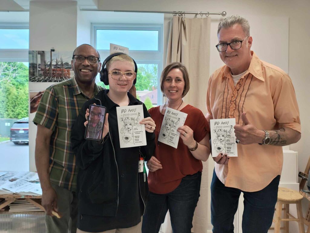 Then I stopped in at the Cline House Gallery, located at 204 Second St. East, Cornwall to check out the Off The Wall – Cornwall Youth Multimedia Art Group Exhibition “Waste not/Want – Explorations in food culture. This is an after-school program led by artist Sean George, that engages youth in community, art, and current issues. The project is generously supported by the Social Development Council of Cornwall & Area and the Cline House. and I was also excited to experience the Zine Class Launch featuring the zine “Bad Apples #2” – the Food Issue! This zine was written, drawn and laid out by a very talented group of Cornwall teens under the guidance of Stacey Case. For more info about the Cline House visit: www.clinehousegallery.com