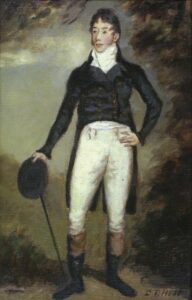 A painting of the young John McDonald of Garth. Dressed in gentleman’s garb in an idyllic rural setting, this image is meant to convey the subject’s status as a wealthy landowner. It so happens when the work was done, McDonald had neither wealth, nor land, facts that reveal much about his personality.(Courtesy, Library Archives Canada, C1619.)
