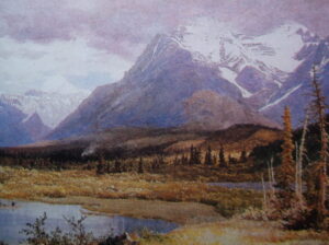 A painting of the Rockey Mountains, near the Nor’Westers’ trading post tHudson’s Hope, established by Simon Fraser in 1805. (Courtesy, Library Archives Canada, C1619.)