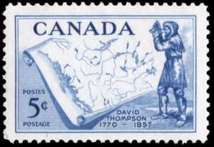 In 1957, Canada Post issued this stamp of David Thompson and his map of Western Canada. (Courtesy, Library and Archives Canada, 363048.)