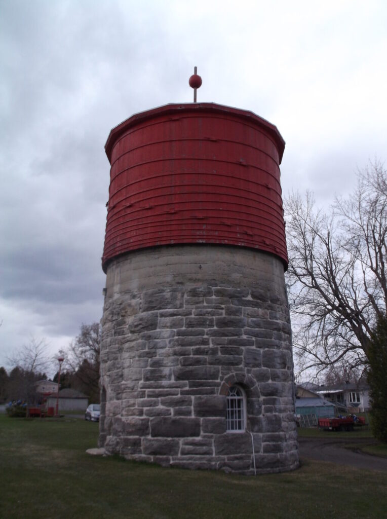 Return to the Service Road and continue east to CR 23 and go north, past CR 18. Through a quirk in provincial politics, you will enter small slice of Quebec, turn east again to Dalhousie Station and then left across the railway tracks where you will see the only complete train water tower( minus spigot), remaining out of the more than 40 that once dotted Eastern Ontario.