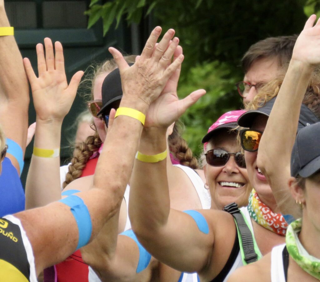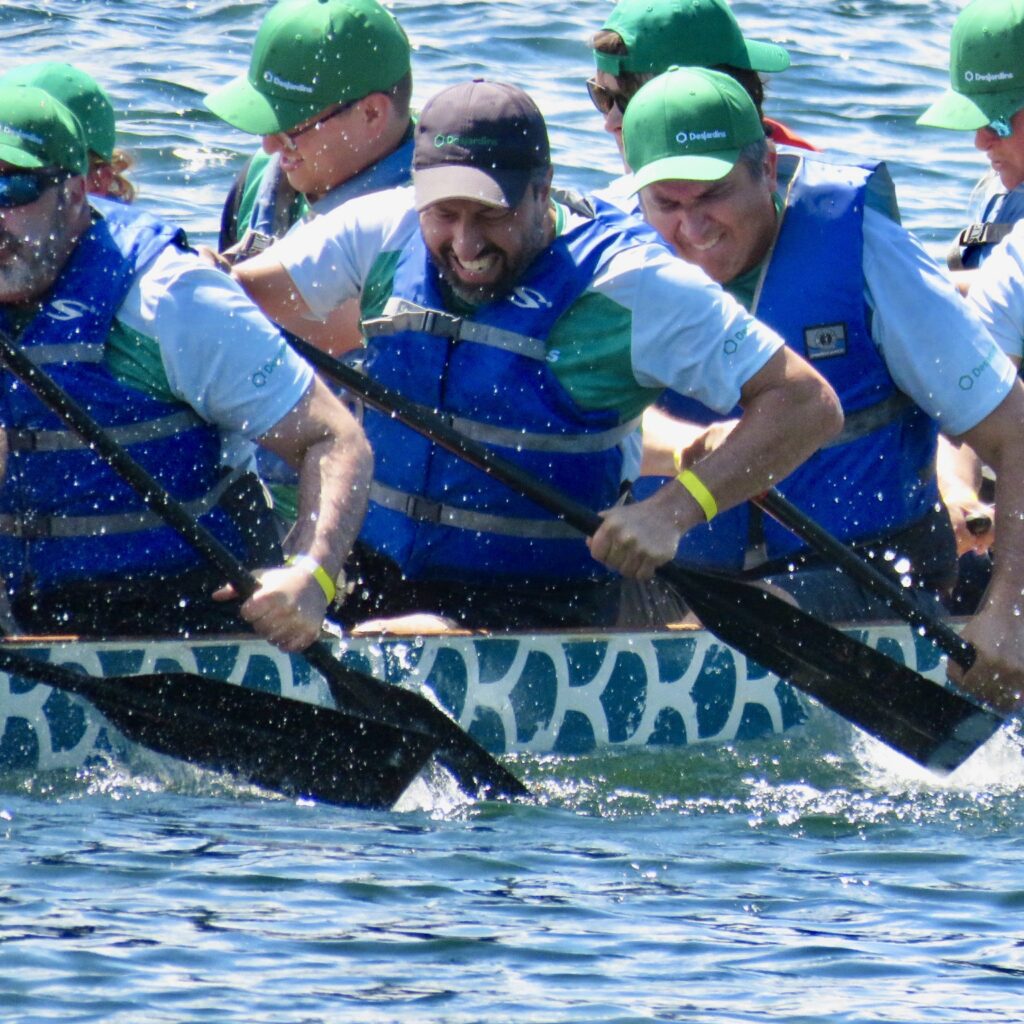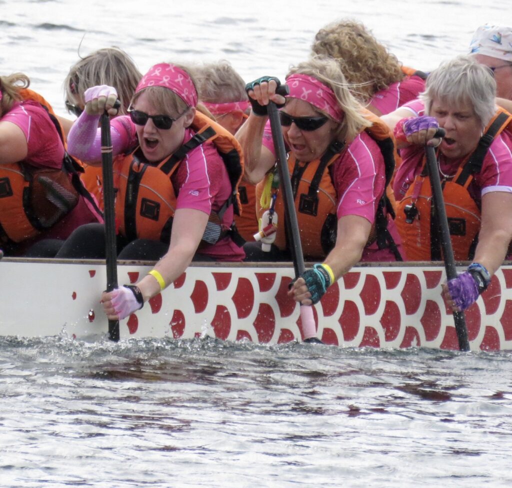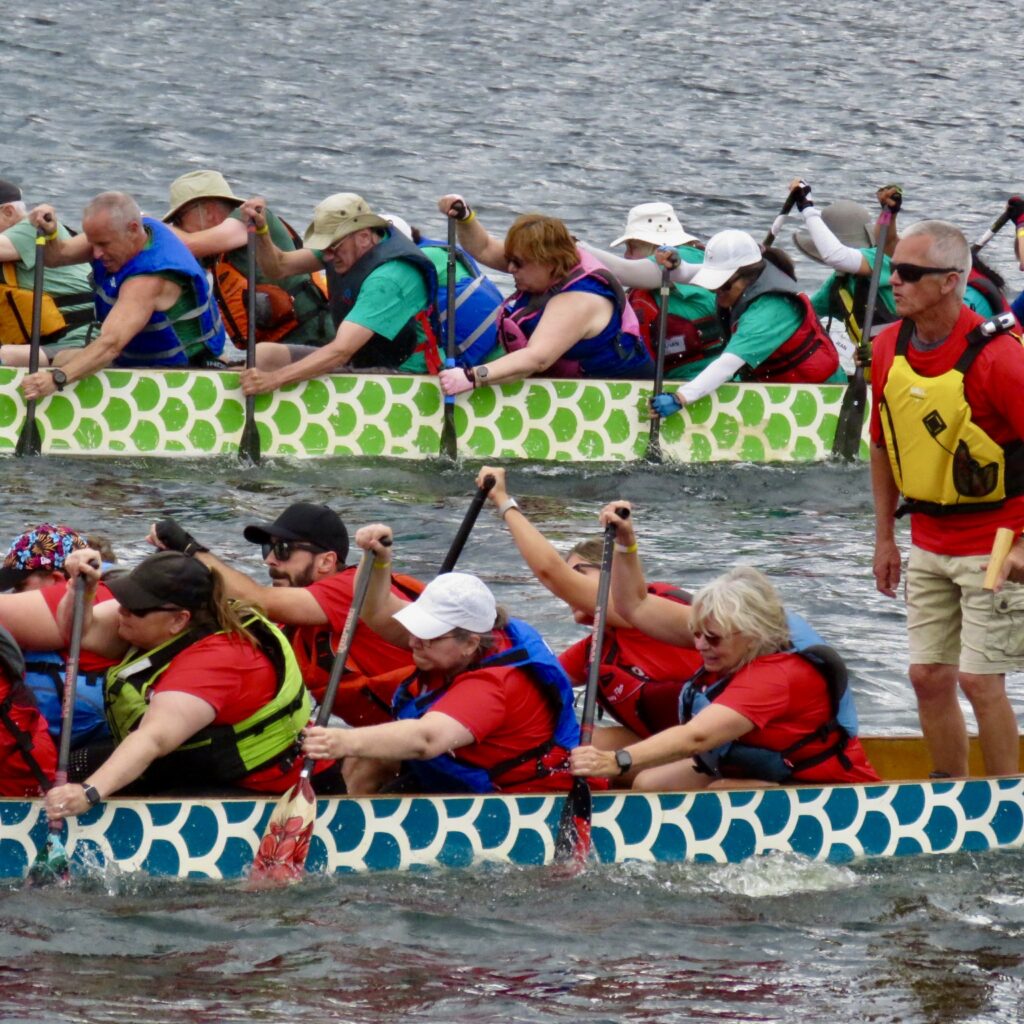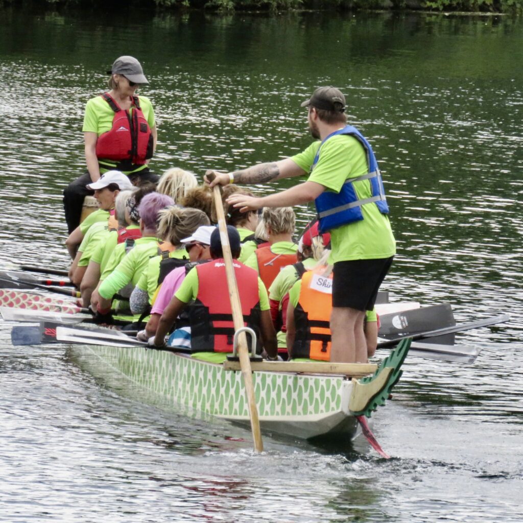 The afternoon heat started with three teams composed of cancer survivors:  Dragon Flies Breast Cancer Survivor Group from Peterborough, Busting Out Ottawa, and West Island Dragons from Montreal. A special ceremony followed with the three teams blowing soap bubbles as Syd Gardner sang accompanied by his guitar.
