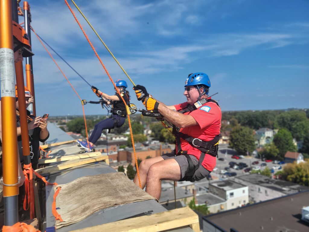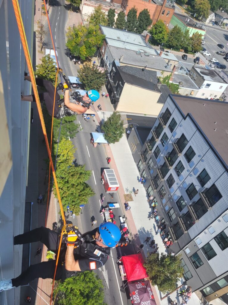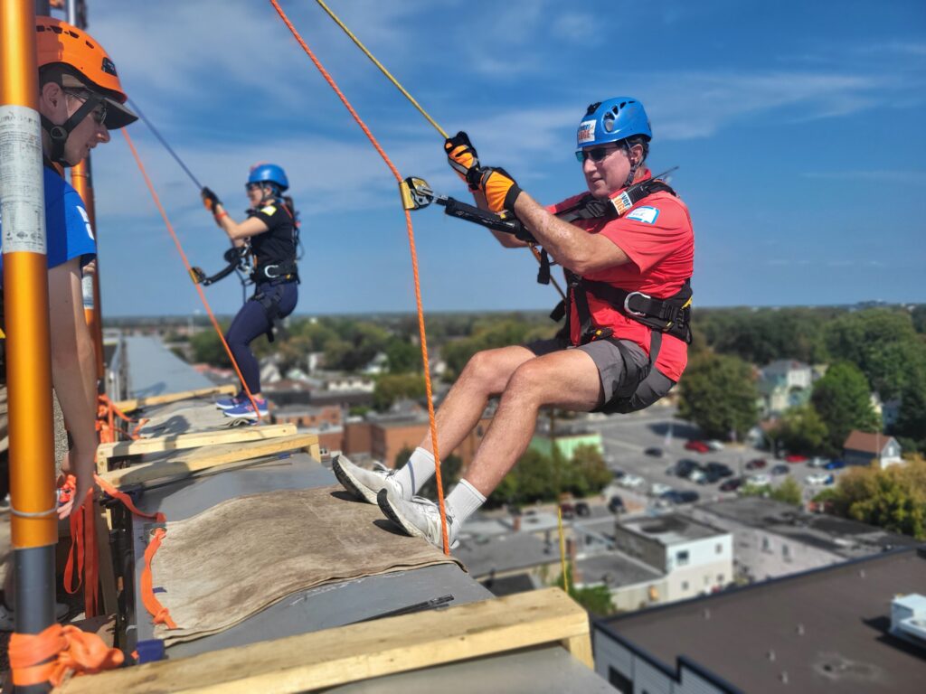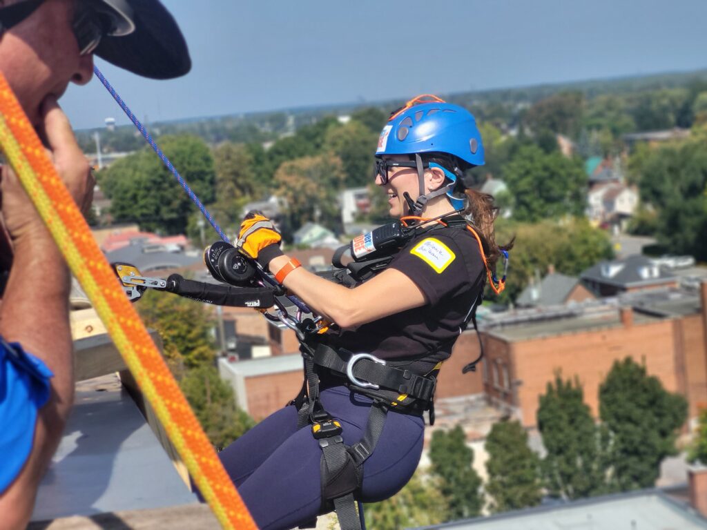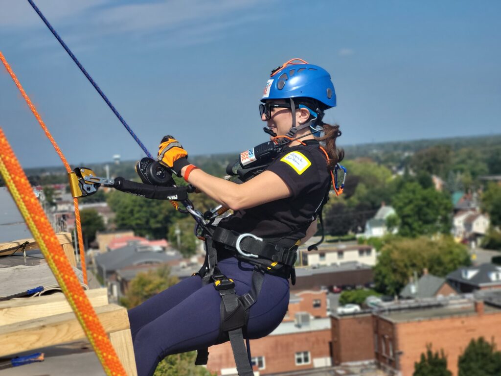 “Going over the edge was the scariest part, no pun intended,” Boileau added, “Once my feet settled onto the side of the building, I felt comfortable and took in the view. The rest of the rappel experience was a piece of cake. I would 100% do it again.”