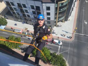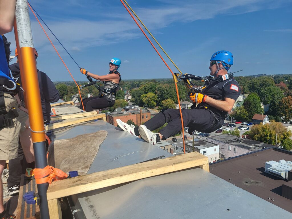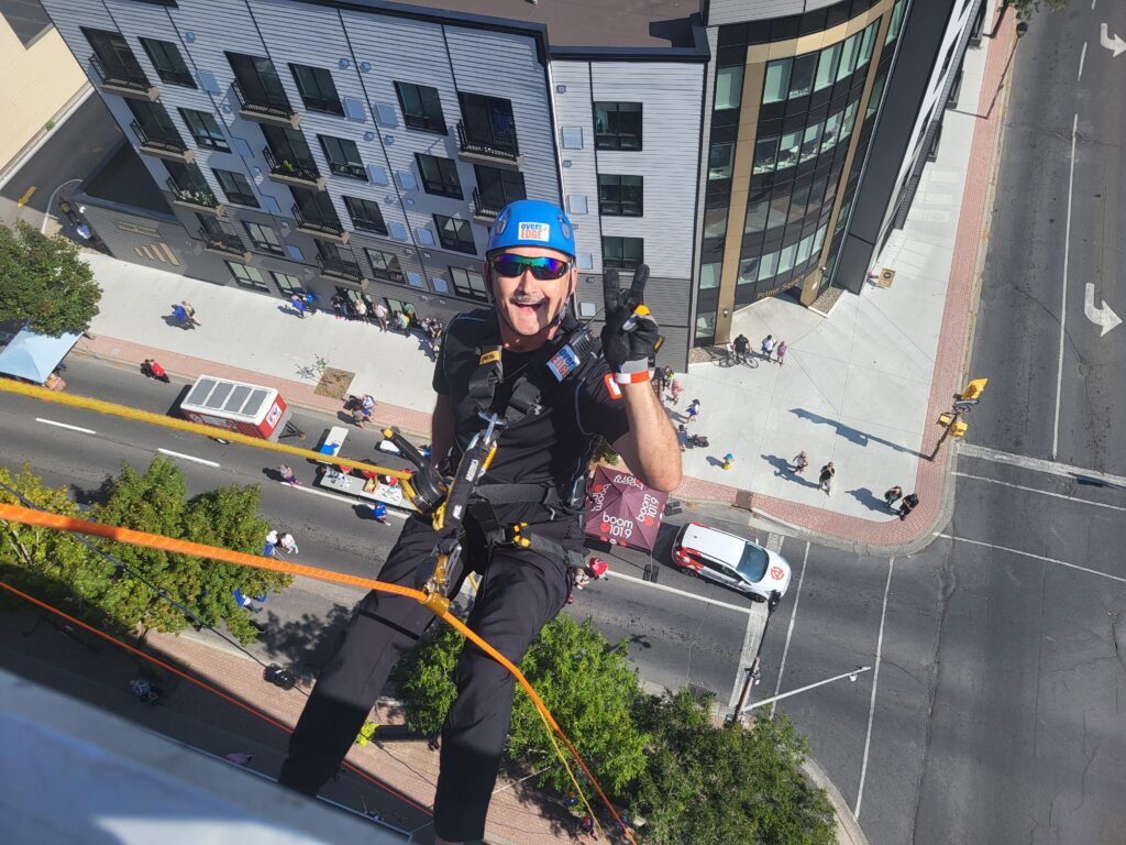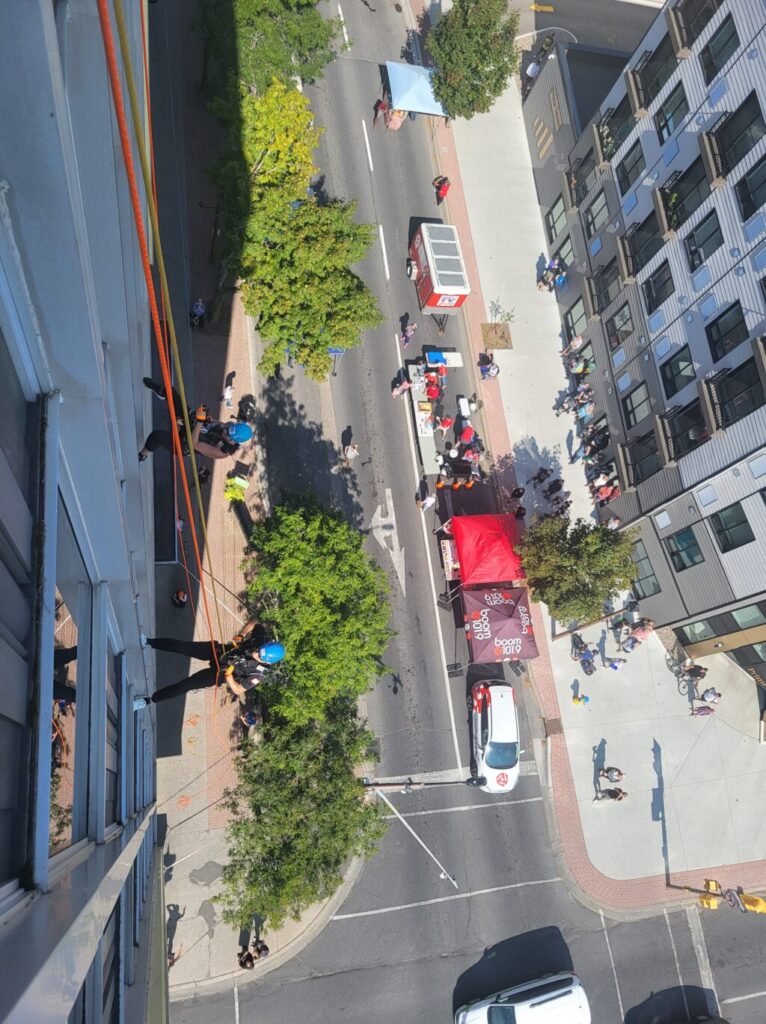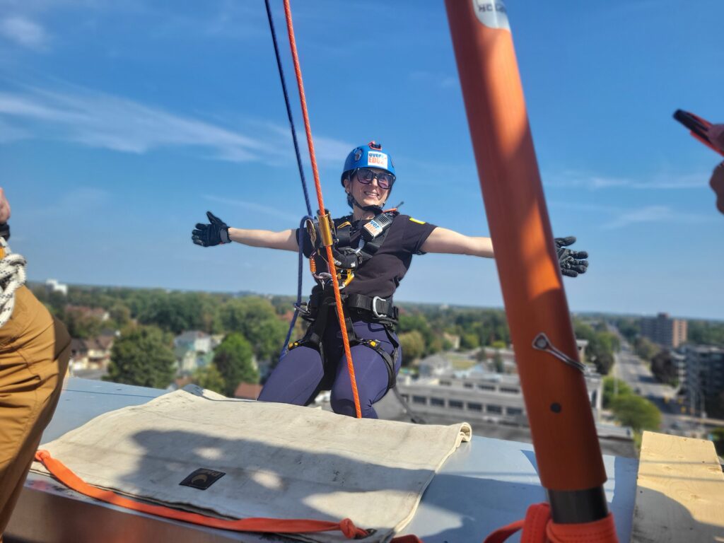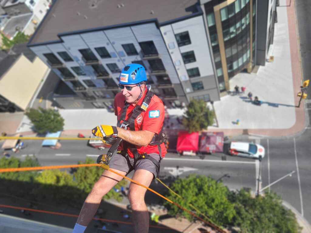 “Going over the edge was the scariest part, no pun intended,” Boileau added, “Once my feet settled onto the side of the building, I felt comfortable and took in the view. The rest of the rappel experience was a piece of cake. I would 100% do it again.”