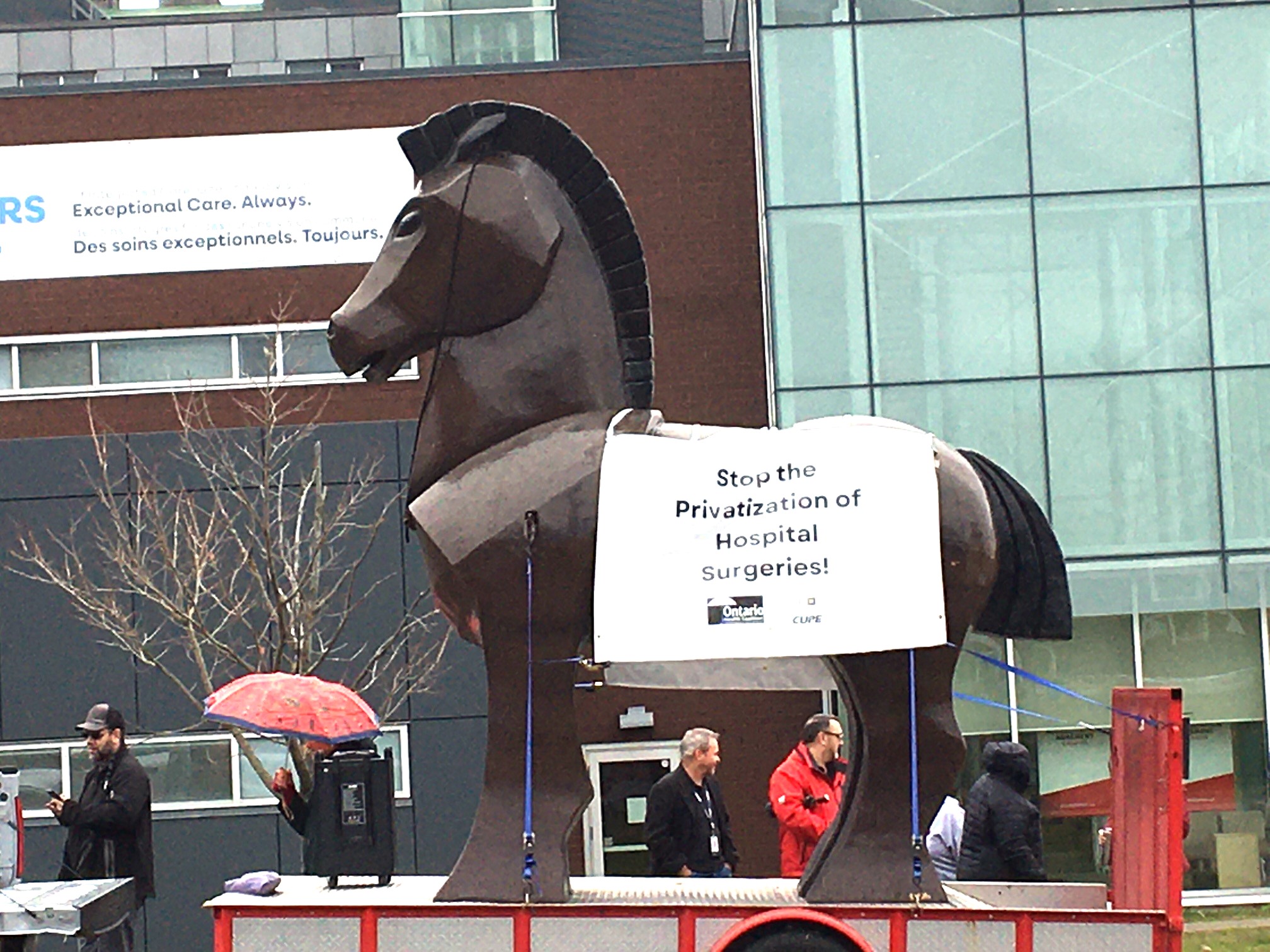 On the surface, Ford’s push for privatization appears to be a harmless and, indeed, beneficial solution to the province’s healthcare woes. But as we know, the Trojan Horse of yore was no ordinary gift, and neither are these so-called improvements. Ford’s stealth approach blends systematic starvation of the public system over the years with a quiet shift of healthcare services toward private, for-profit providers at taxpayers’ expense.