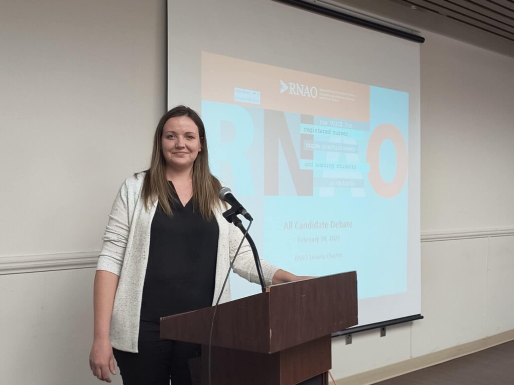 The event began with an introduction by Morgan Hoffarth, who provided insight into the RNAO’s mission and its significant membership, which currently stands at 54,400 strong. From there, the conversation took on a relaxed, open-discussion format, allowing nursing students to voice their concerns and ask direct questions about healthcare policies and nursing-specific challenges.