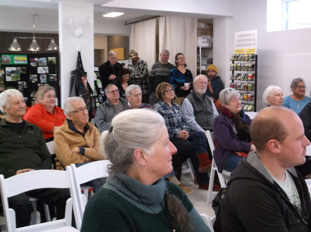 On Saturday, February 1st, Organic seed farmer and author Dan Brisebois gave a concisely informative and animated presentation promoting his newest book, The Seed Farmer: A Complete Guide to Growing, Using, and Selling Your Own Seeds, to a standing room only audience in the multi-purpose room at the Cline House Art Gallery in Cornwall.
