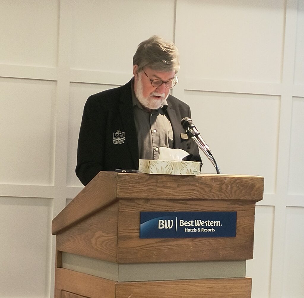 Mayor Towndale (pictured above) stepped up to the podium and gave a lively and informative update, sprinkling in humour and personal touches. He began by acknowledging the City Councillors in attendance: Syd Gardiner, Sarah Good, Elaine MacDonald, and Denis Sabourin.
