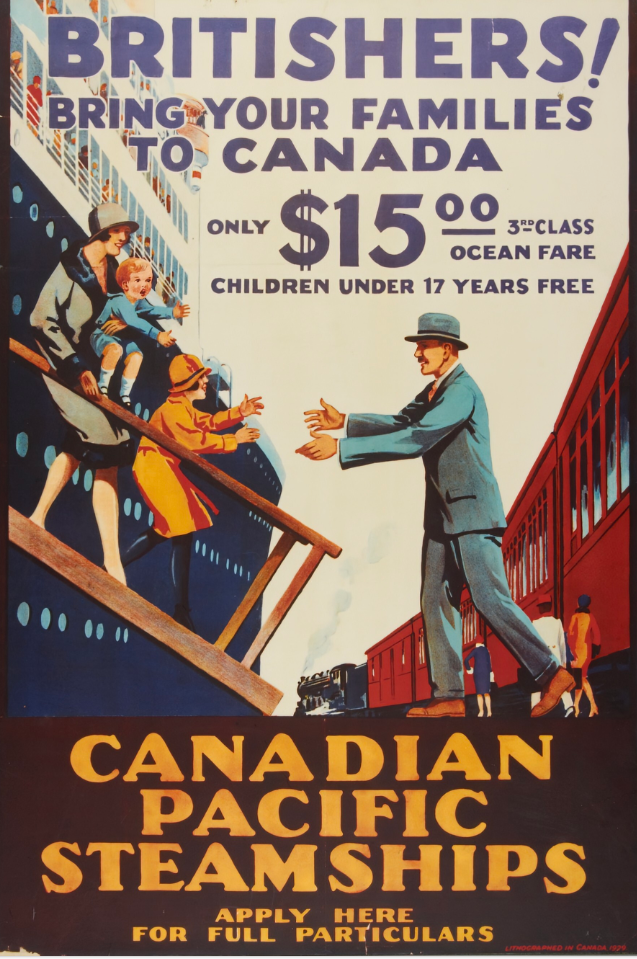 Posters pandered the art of persuasion. The entire Modernist movement was about seeing old things in new ways. For railway companies, shipping lines, and later airlines, posters helped market travel to as wide an audience as possible. Commercial artists used posters to promote fast and efficient modern travel; Canada was presented both as a place to see and be seen.
